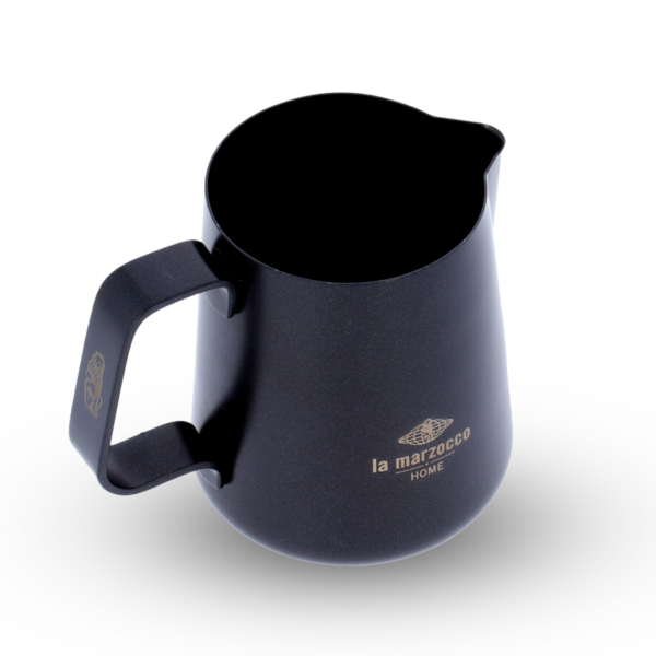 قم بتبخير الحليب على جهاز Linea Mini أو GS3 للحصول على كابتشينو مثالي مع هذا الإبريق الأسود المخصص سعة 30 سنتيلتر.