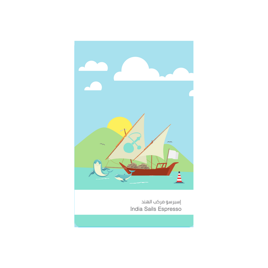 This is a fully eastern blend from India, Indonesia and Ethiopia. The main ingredient is ِArabica Monsooned Malabar AA, and the monsoon process gave us the idea of the name, as it is a frequent route for merchants and it was on these boats that the idea of monsoon process was discovered.